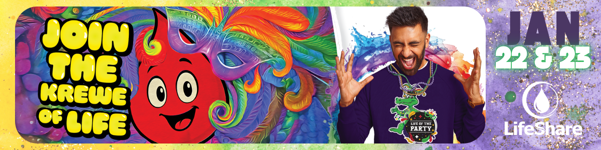 This Mardi Gras season, celebrate with purpose. Join the Krewe of Life, give blood, and help ensure our community has the lifesaving resources it needs—one donation at a time.